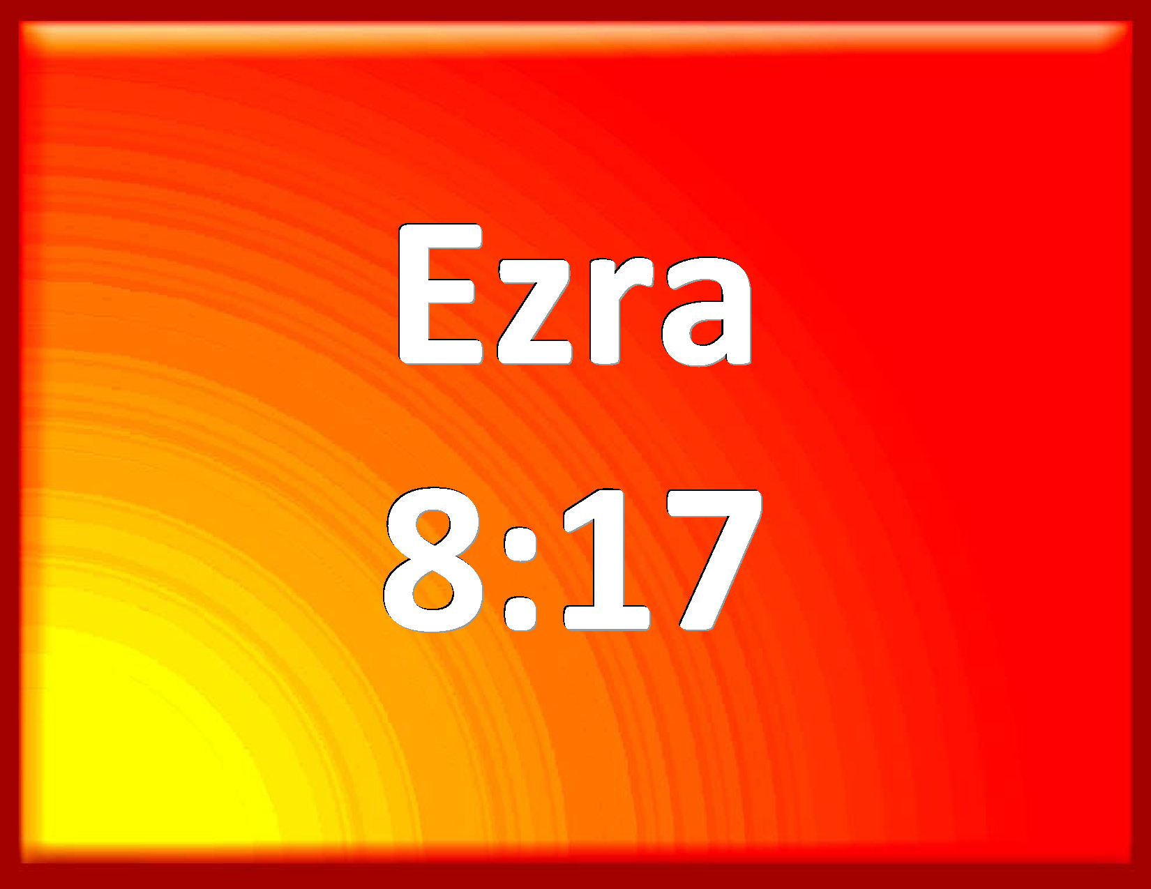 Bible Verse Slide Ezra 8:17 And I sent them with commandment to Iddo the chief at the place Casiphia, and I told them what they should say to Iddo, and to his brothers the Nethinims, at the place Casiphia, that they should bring to us ministers for the house of our God. KJV: And I sent them with commandment unto Iddo the chief at the place Casiphia, and I told them what they should say unto Iddo, and to his brethren the Nethinims, at the place Casiphia, that they should bring unto us ministers for the house of our God. DRB: And I sent them to Eddo, who is chief in the place of Chasphia, and I put in their mouth the words that they should speak to Eddo, and his brethren the Nathinites in the place of Chasphia, that they should bring us ministers of the house of our God. DBT: And I gave them a commission to Iddo the chief, at the place Casiphia, and I put words in their mouths to say to Iddo and his brethren the Nethinim, at the place Casiphia, that they should bring to us ministers for the house of our God. ERV: And I sent them forth unto Iddo the chief at the place Casiphia; and I told them what they should say unto Iddo, and his brethren the Nethinim, at the place Casiphia, that they should bring unto us ministers for the house of our God. WBT: And I sent them with commandment to Iddo the chief at the place Casiphia, and I told them what they should say to Iddo, and to his brethren the Nethinims, at the place Casiphia, that they should bring to us ministers for the house of our God. WEB: I sent them forth to Iddo the chief at the place Casiphia; and I told them what they should tell Iddo, [and] his brothers the Nethinim, at the place Casiphia, that they should bring to us ministers for the house of our God. YLT: and I charge them for Iddo the head, in the place Casiphia, and put in their mouth words to speak unto Iddo, and his brethren the Nethinim, in the place Casiphia, to bring to us ministrants for the house of our God.Links Ezra 8:17 NIV • Ezra 8:17 NLT • Ezra 8:17 ESV • Ezra 8:17 NASB • Ezra 8:17 KJV • Ezra 8:17 Interlinear • Ezra 8:17 Commentaries • Ezra 8:17 Parallel Texts • Ezra 8:17 Bible Apps • Ezra 8:17 Parallel • Bible Hub |
