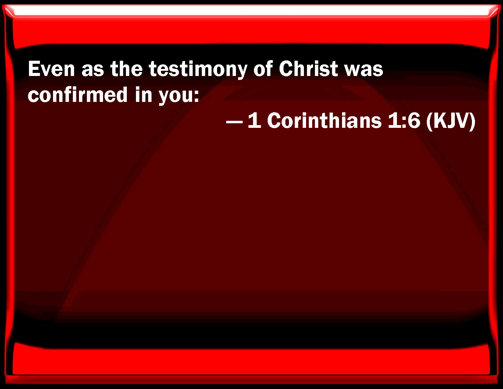 1 Corinthians 1:6 Even as the testimony of Christ was confirmed in you: