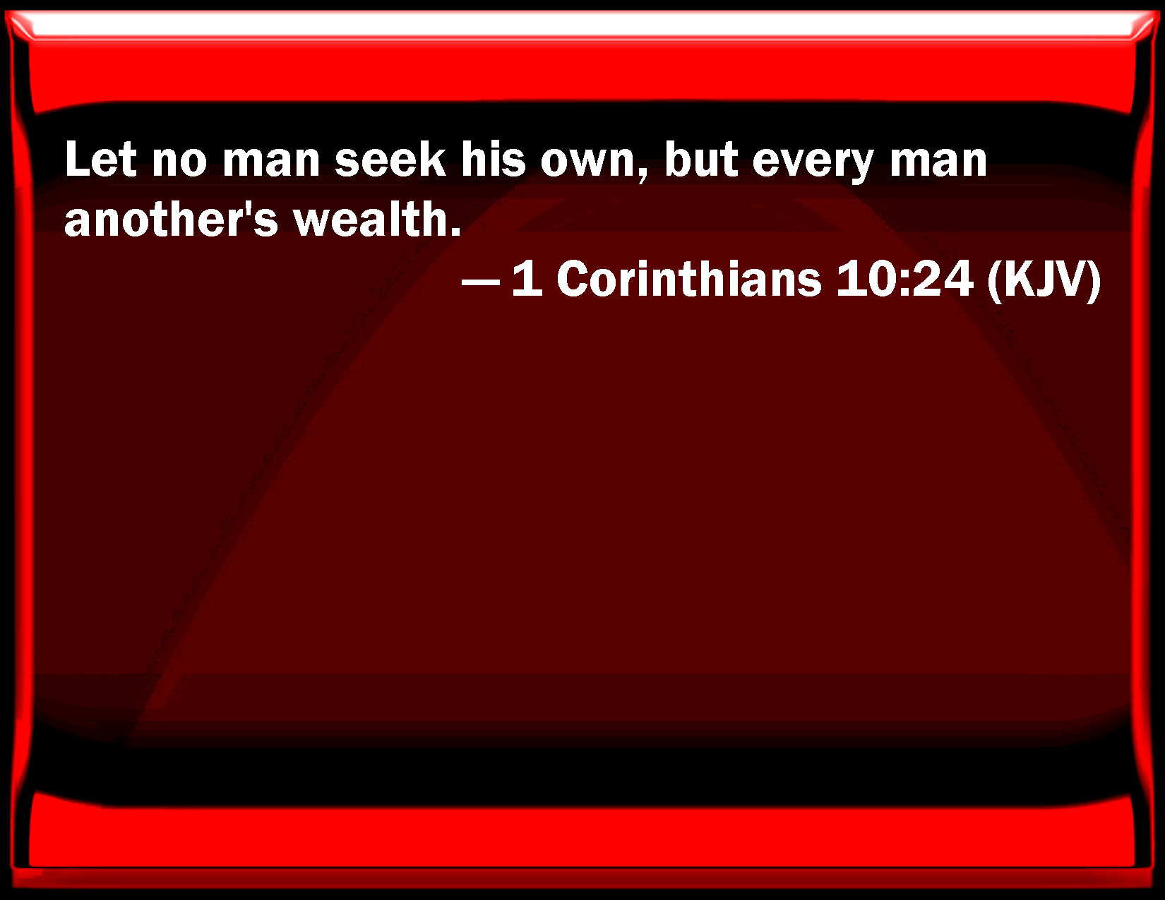 1 Corinthians 10:24 Let no man seek his own, but every man another's wealth.