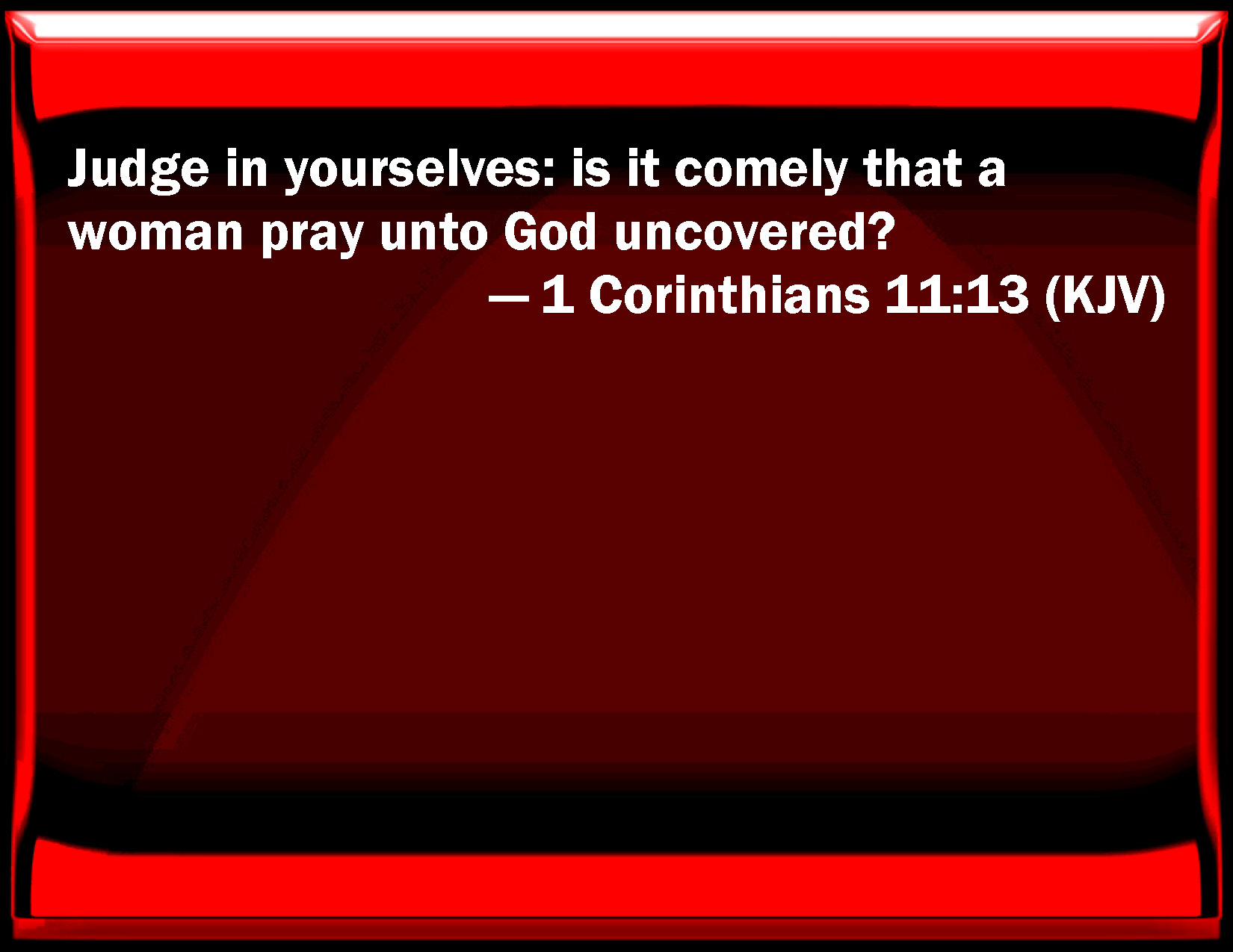 1 Corinthians 11:13 Judge in yourselves: is it comely that a woman pray to God uncovered?