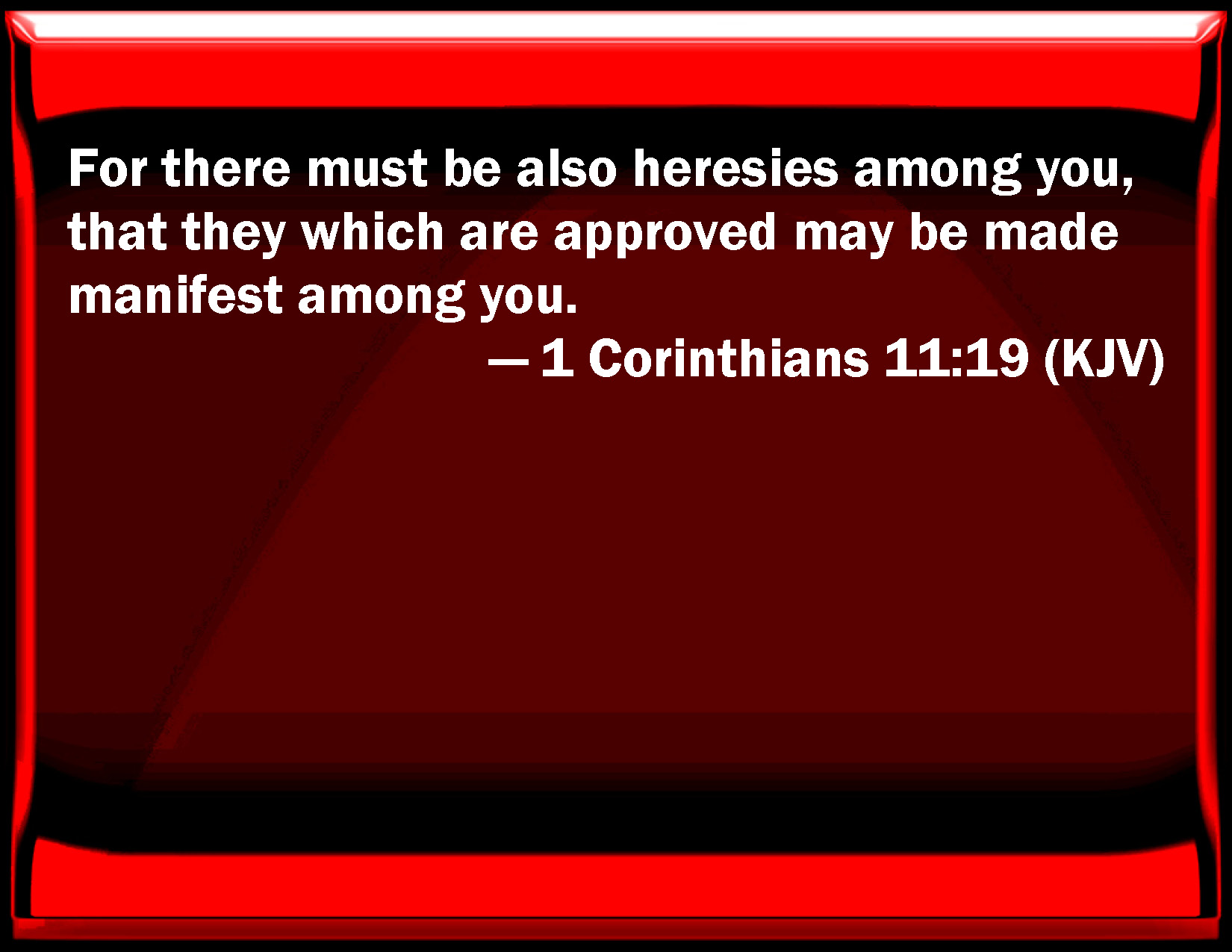 1 Corinthians 11:19 For there must be also heresies among you, that they which are approved may be made manifest among you.