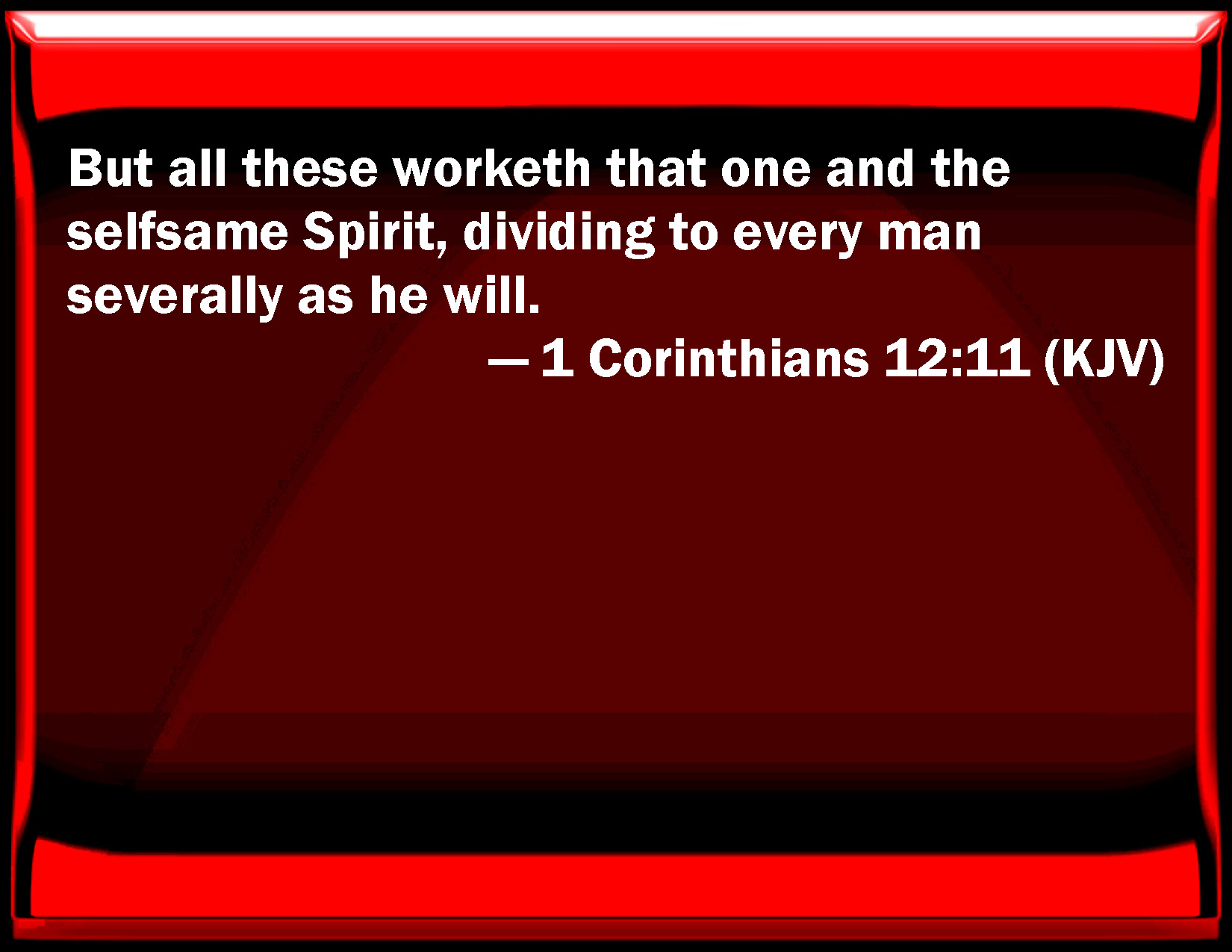 1 Corinthians 12:11 But all these works that one and the selfsame Spirit, dividing to every man severally as he will.