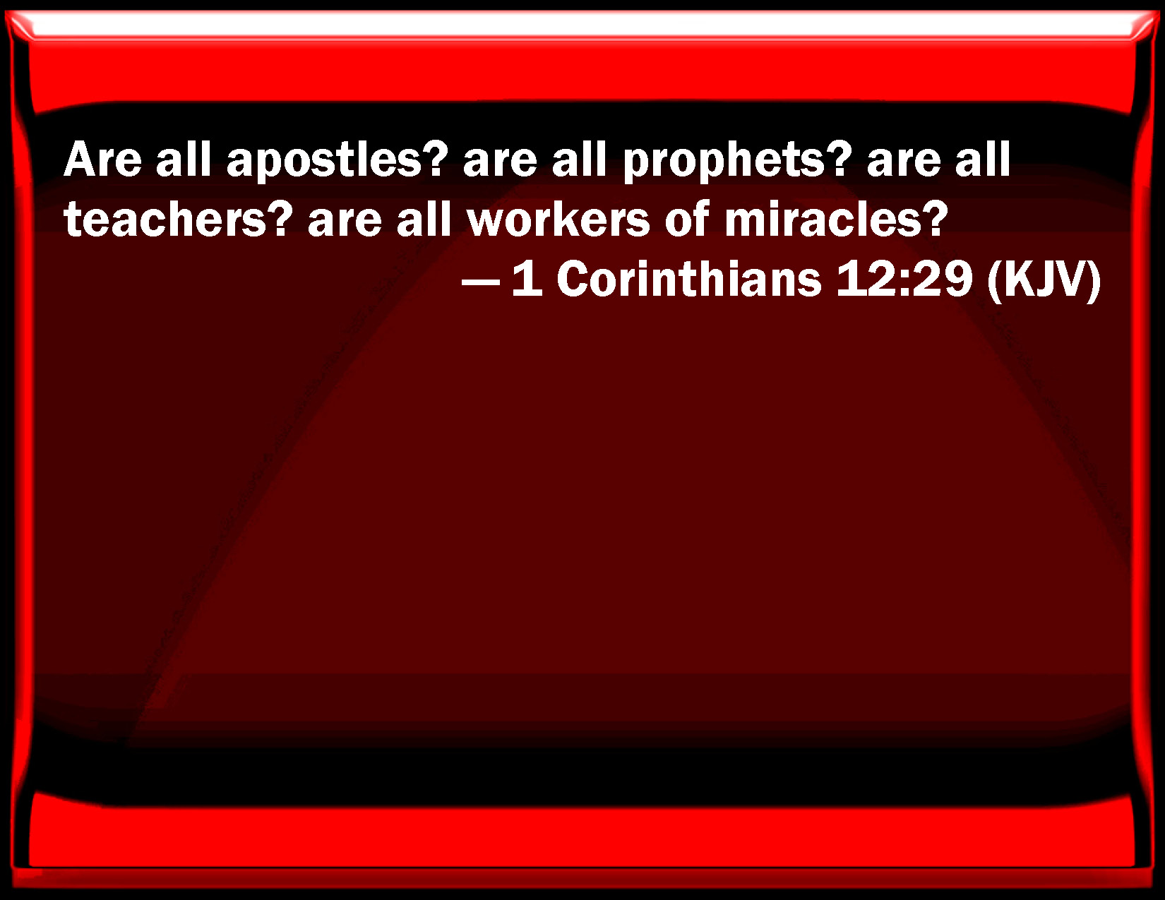 1 Corinthians 12:29 Are all apostles? are all prophets? are all teachers? are all workers of miracles?