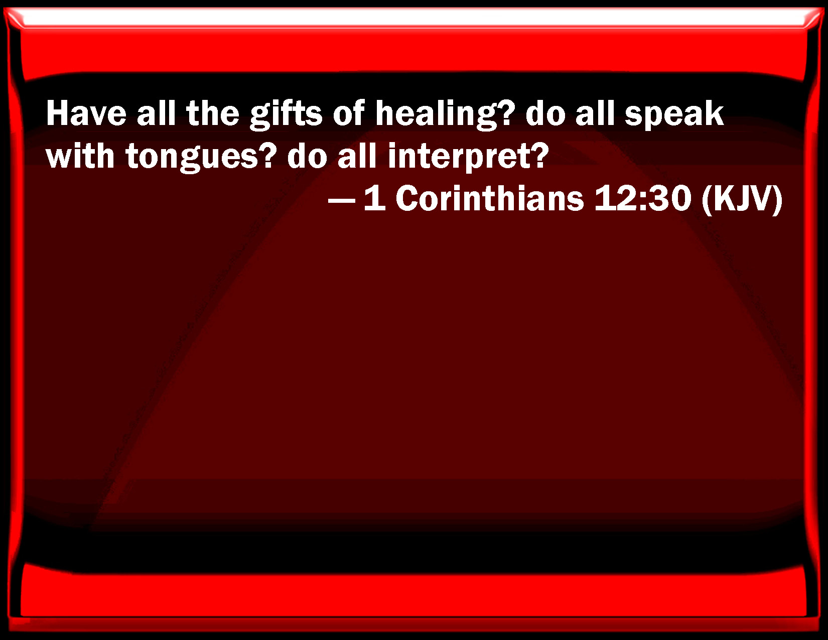 1 Corinthians 12:30 Have all the gifts of healing? do all speak with tongues? do all interpret?