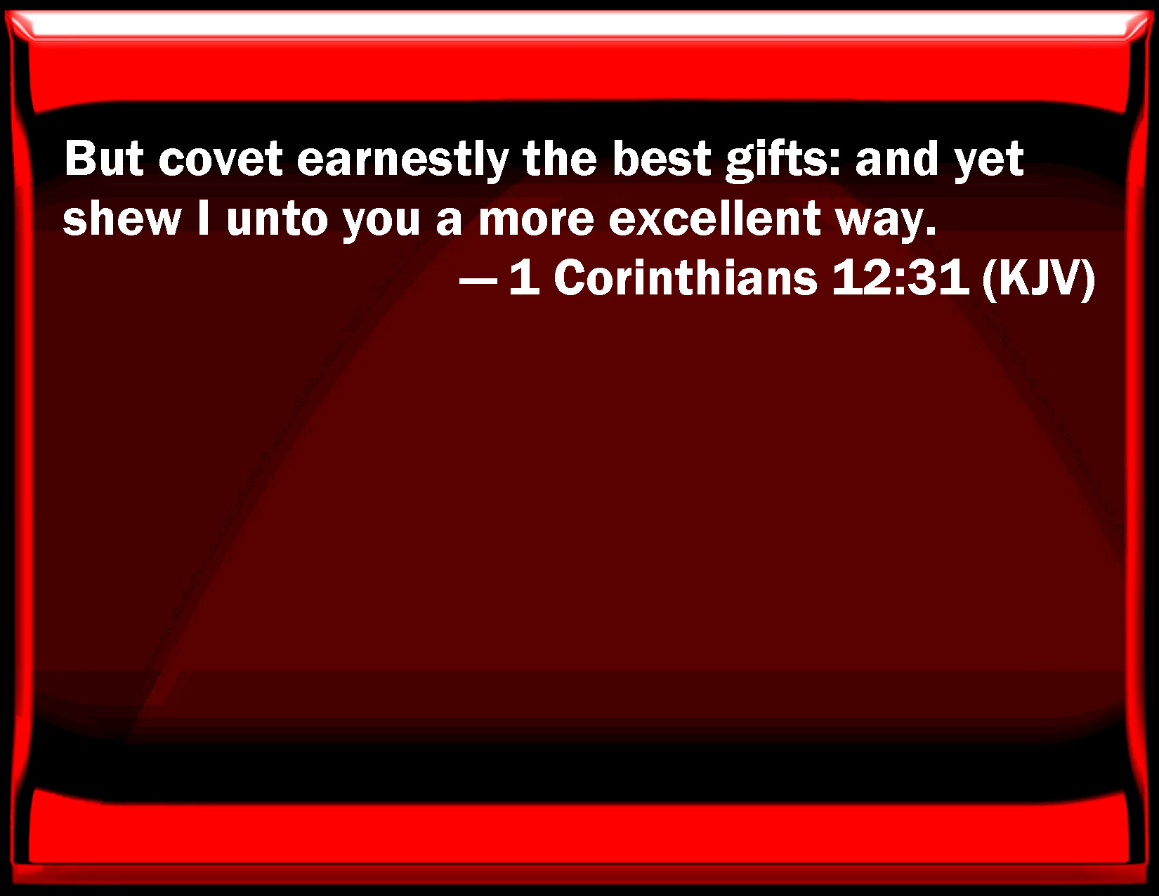 1 Corinthians 12:31 But covet earnestly the best gifts: and yet show I to you a more excellent way.
