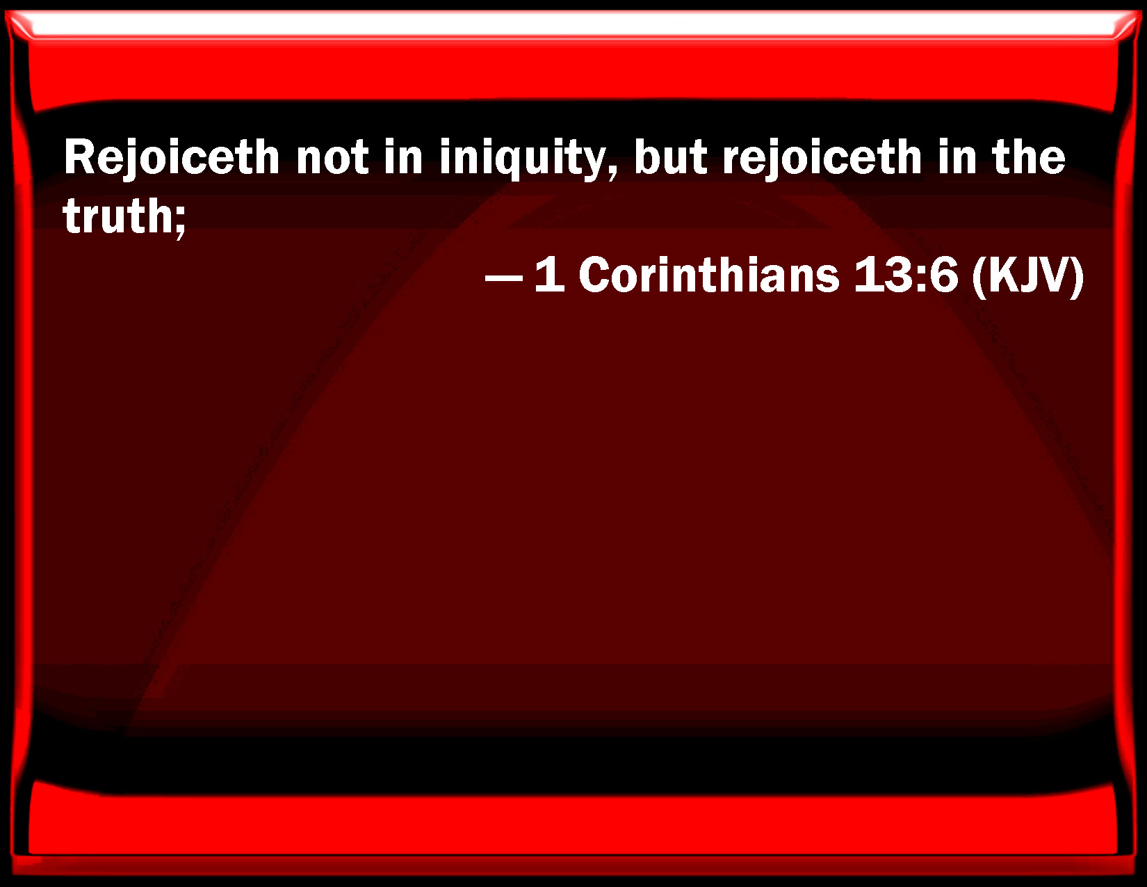 1 Corinthians 13:6 Rejoices not in iniquity, but rejoices in the truth;