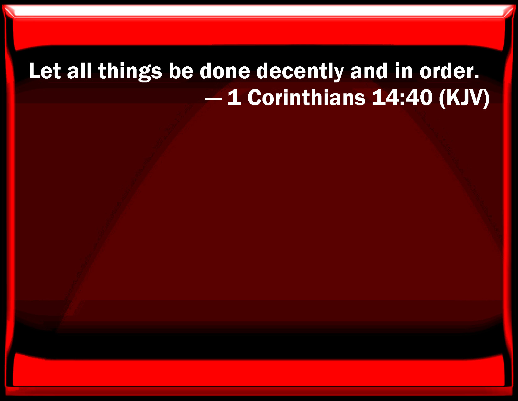 1 Corinthians 14:40 Let all things be done decently and in order.