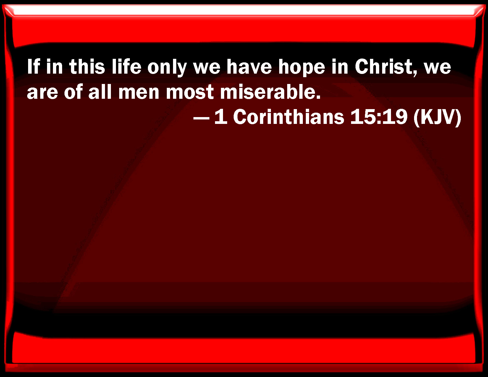 1 Corinthians 15:19 If in this life only we have hope in Christ, we are of all men most miserable.