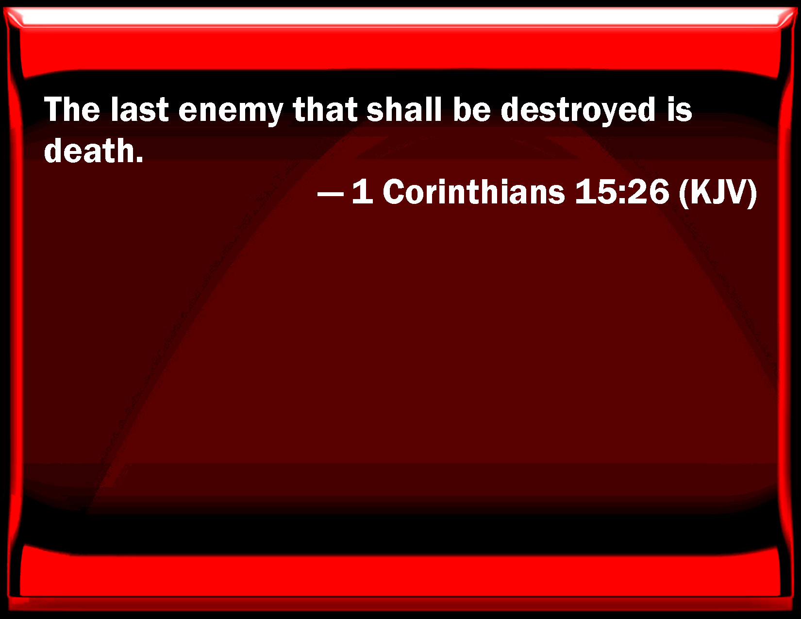 1 Corinthians 15:26 The last enemy that shall be destroyed is death.