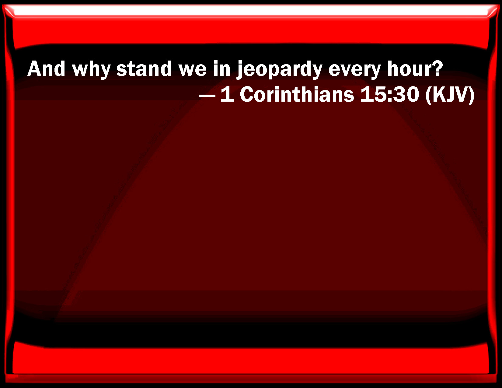 1 Corinthians 15:30 And why stand we in jeopardy every hour?