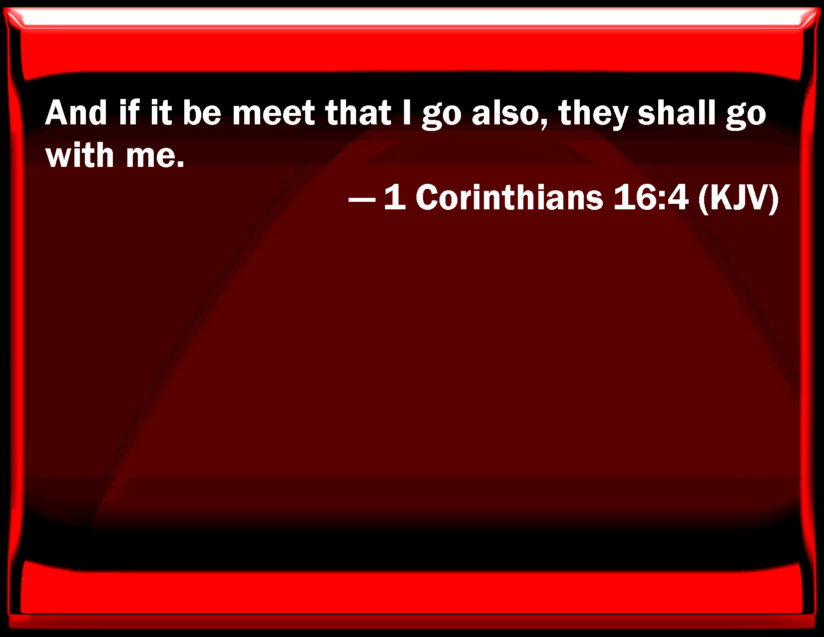 1 Corinthians 16:4 And if it be meet that I go also, they shall go with me.