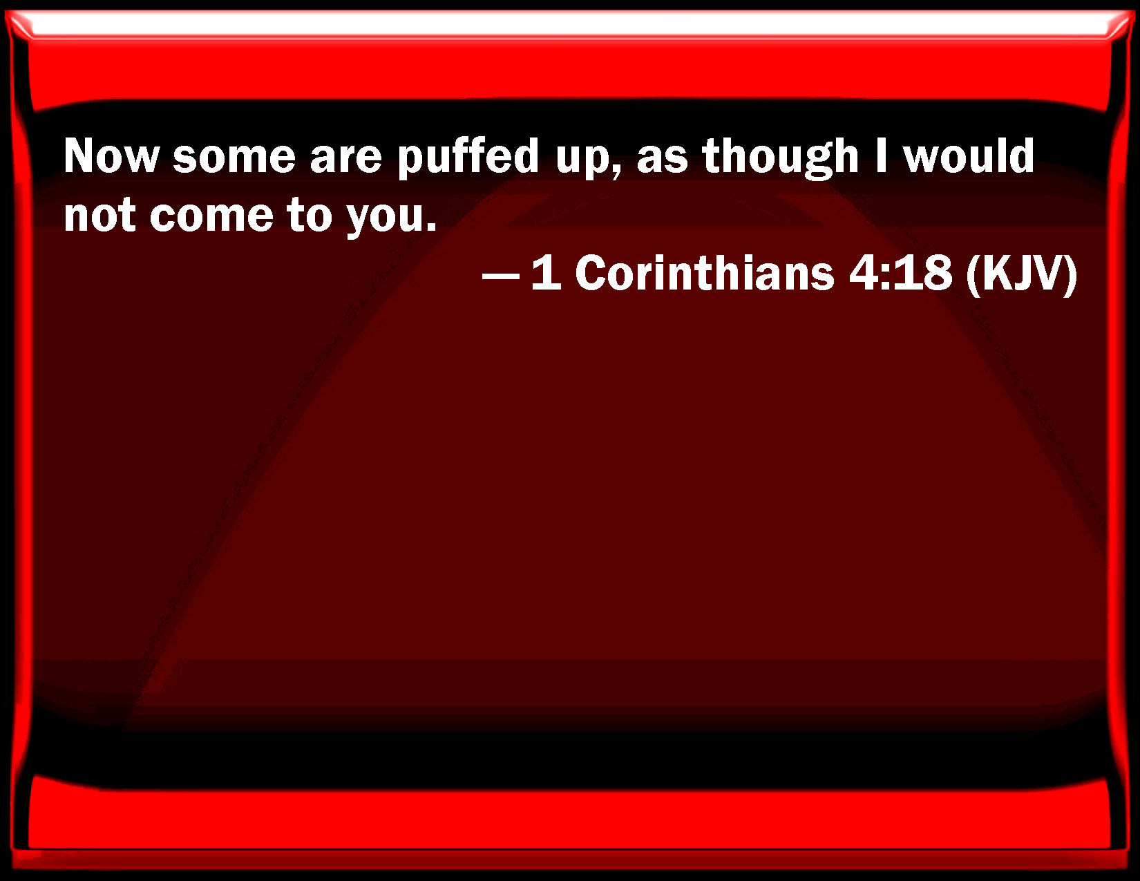 1 Corinthians 4:18 Now some are puffed up, as though I would not come to you.