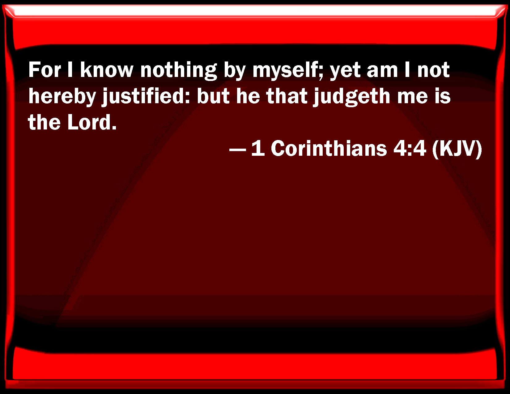 1 Corinthians 4:4 For I know nothing by myself; yet am I not hereby justified: but he that judges me is the Lord.