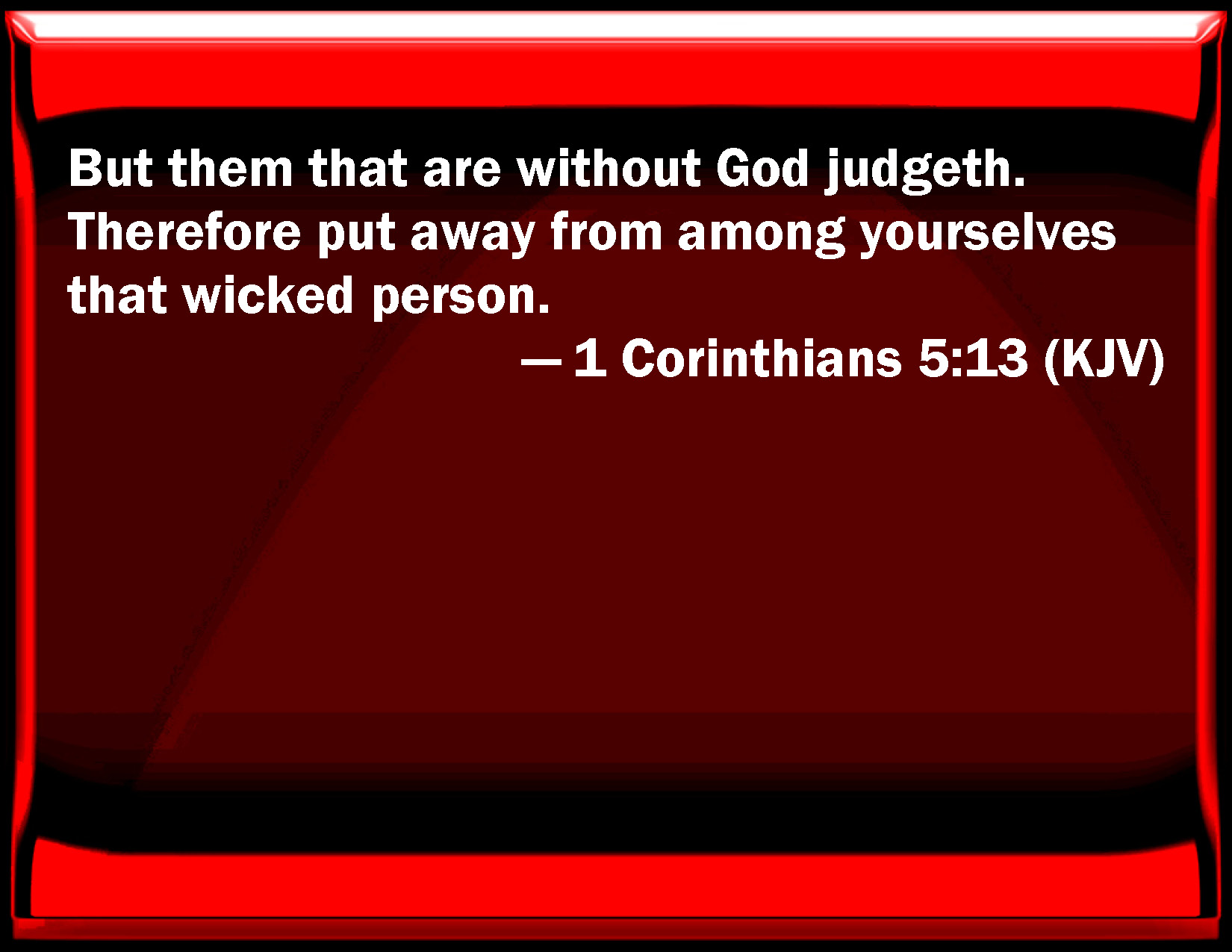 1 Corinthians 5:13 But them that are without God judges. Therefore put away from among yourselves that wicked person.