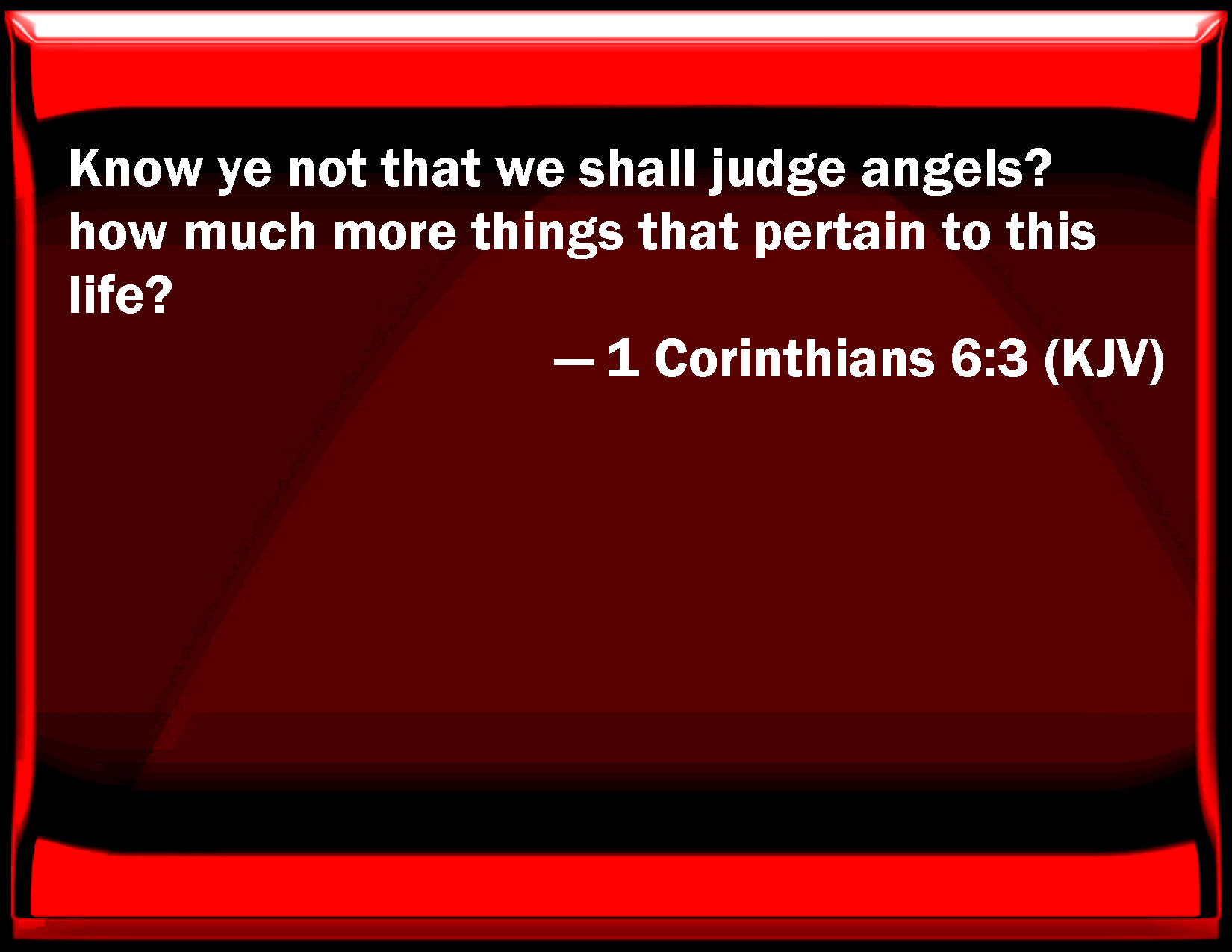 Know ye not that we shall judge angels? how much more, things that pertain to this life?