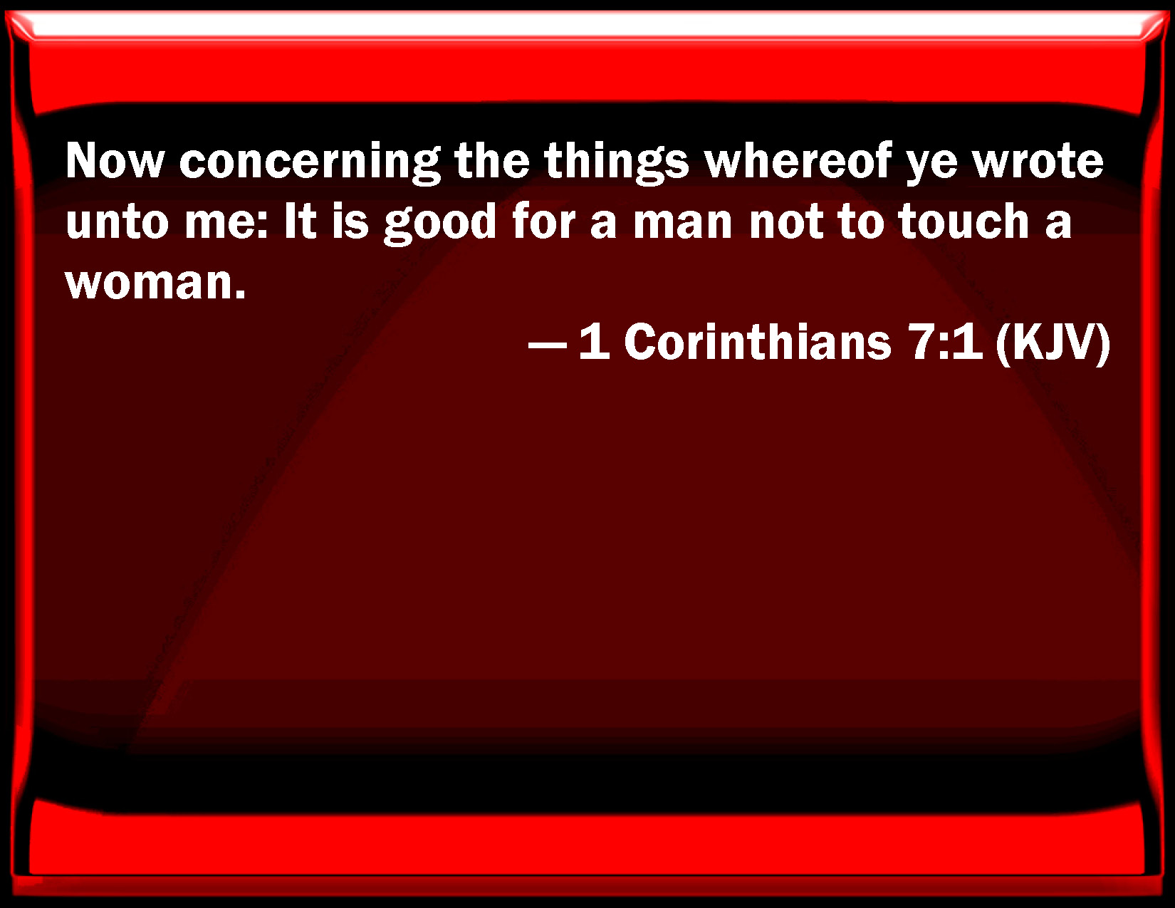 1 Corinthians 7:1 Now concerning the things whereof you wrote to me: It is good for a man not to touch a woman.
