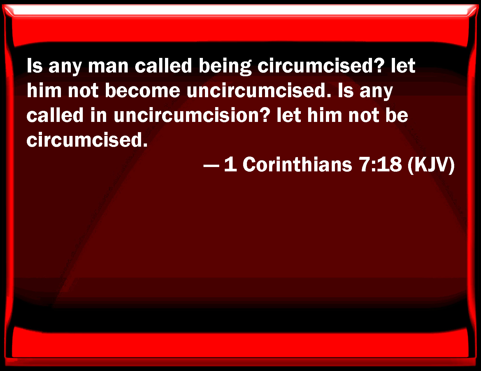 1 Corinthians 7:18 Is any man called being circumcised? let him not become uncircumcised. Is any called in uncircumcision? let him not be circumcised.