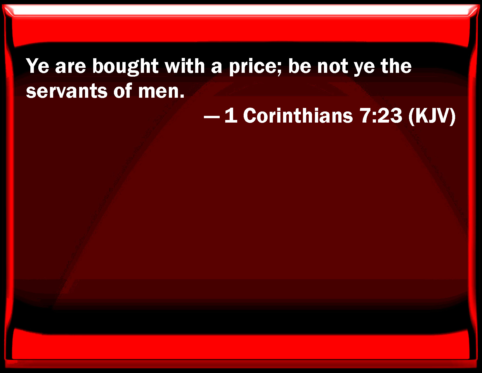 1 Corinthians 7:23 You are bought with a price; be not you the servants of men.