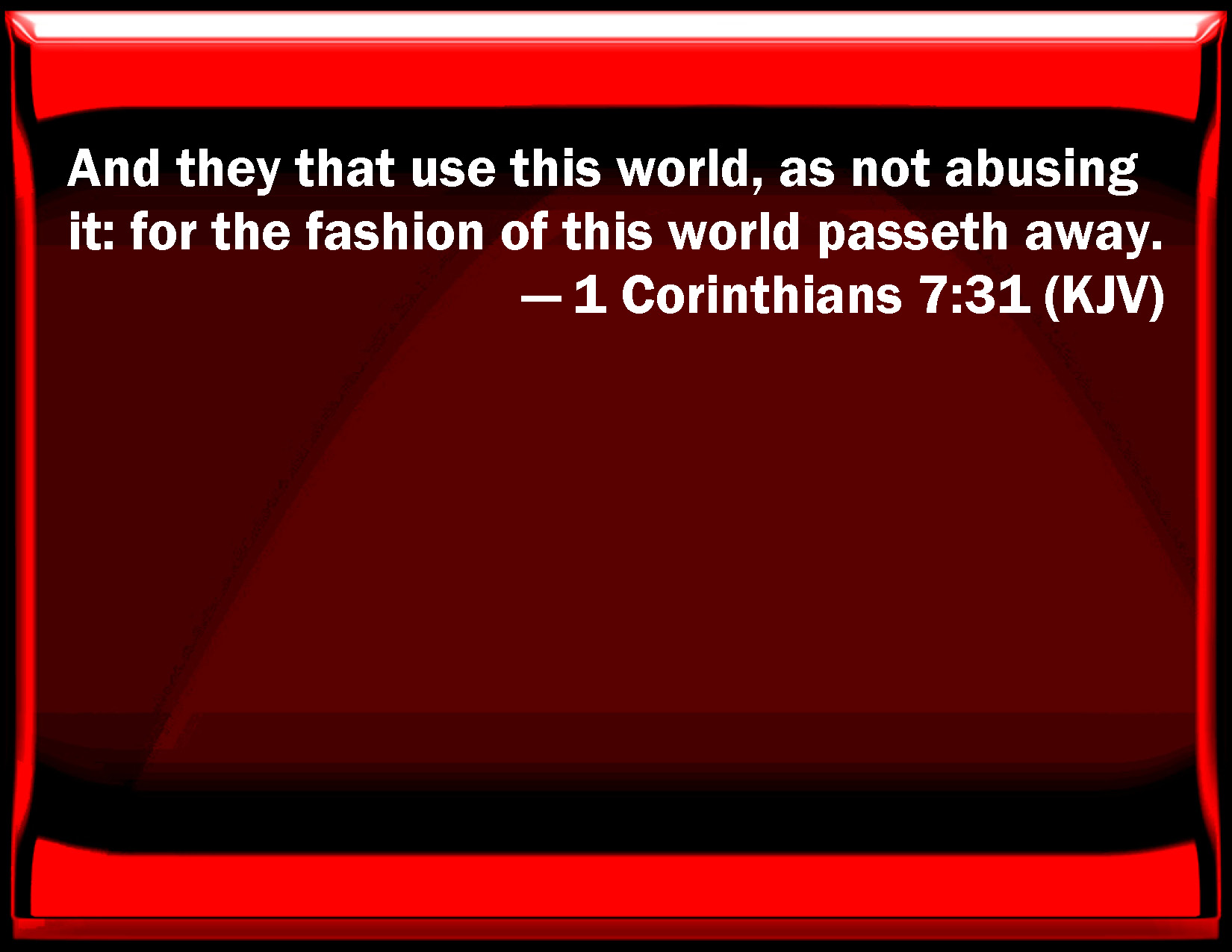 1 Corinthians 7:31 And they that use this world, as not abusing it: for the fashion of this world passes away.