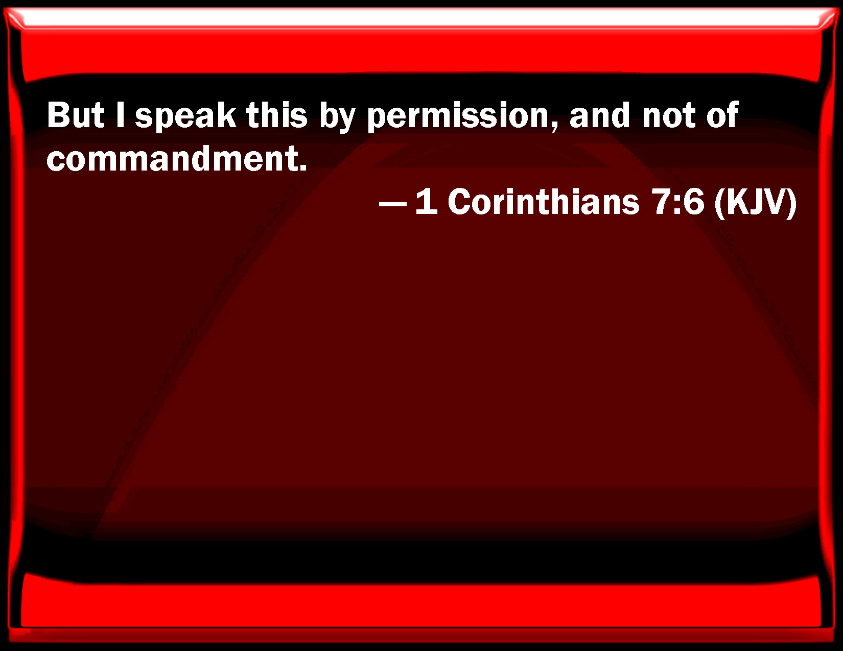 1 Corinthians 7:6 But I speak this by permission, and not of commandment.
