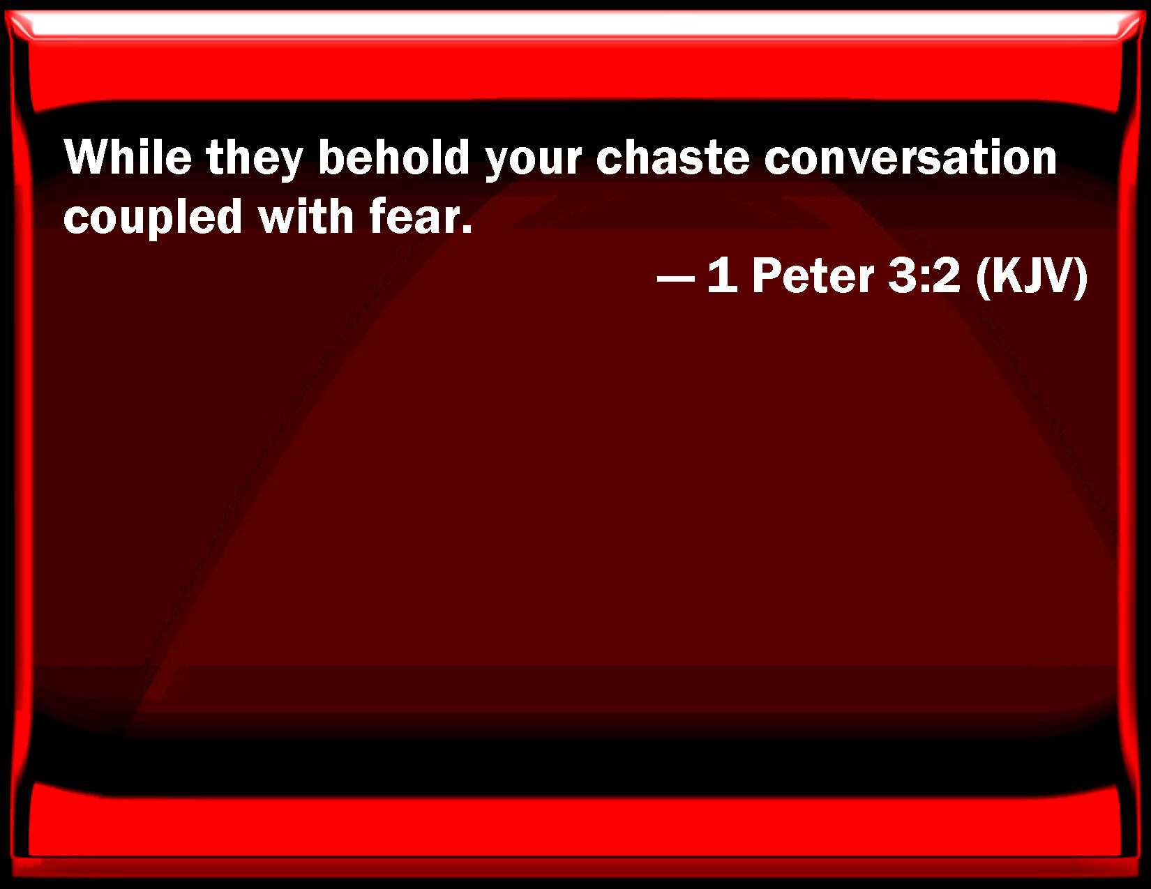 1 Peter 3:2 While they behold your chaste conversation coupled with fear.