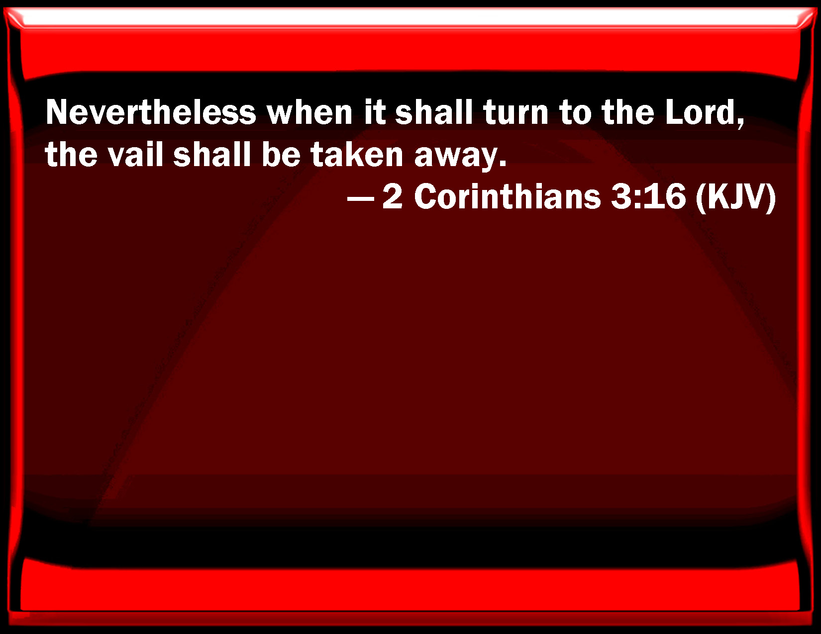 2 Corinthians 3:16 Nevertheless when it shall turn to the Lord, the veil shall be taken away.