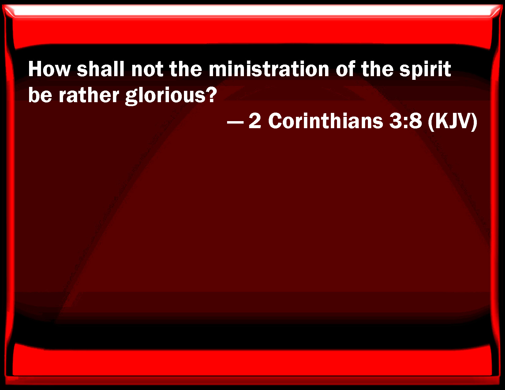 2 Corinthians 3:8 How shall not the ministration of the spirit be rather glorious?