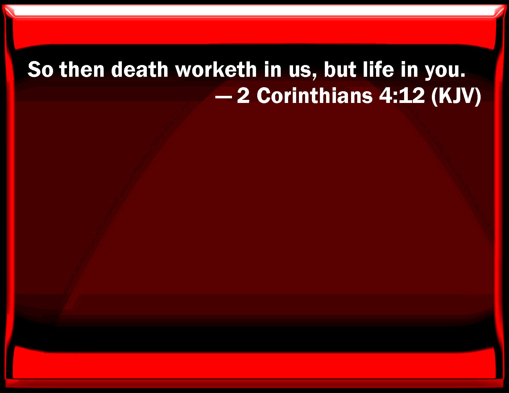 2 Corinthians 4:12 So then death works in us, but life in you.