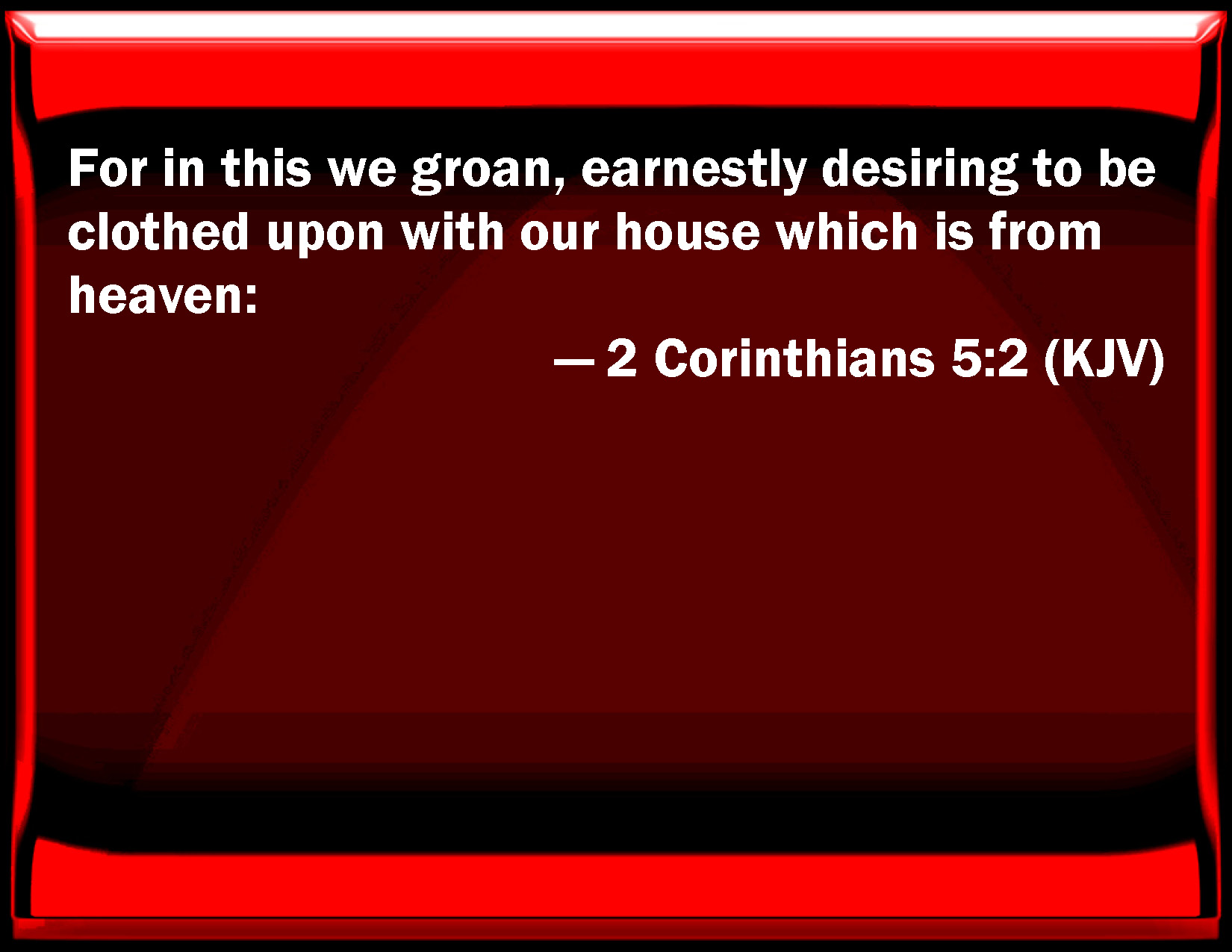 2 Corinthians 5:2 For in this we groan, earnestly desiring to be clothed on with our house which is from heaven: