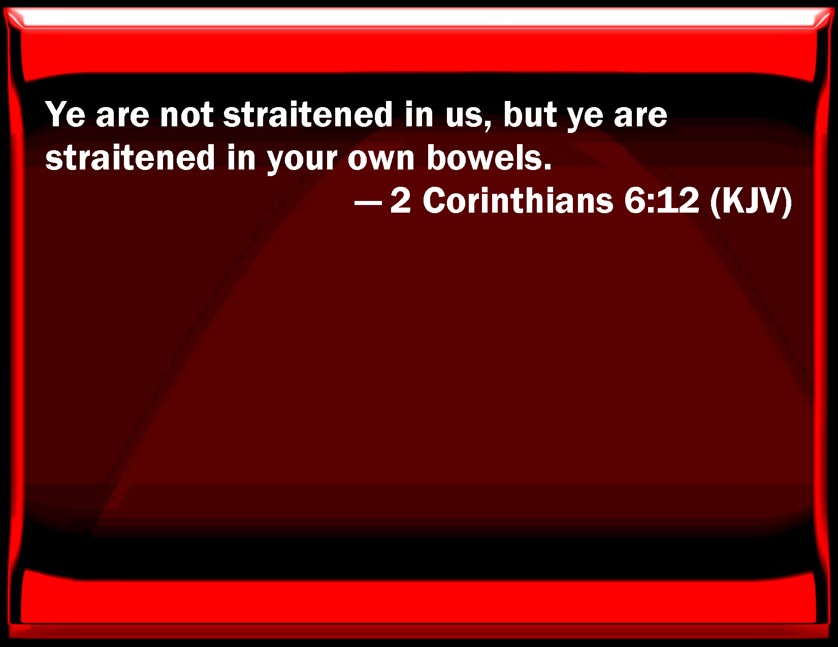 2 Corinthians 6:12 You are not straitened in us, but you are straitened in your own bowels.