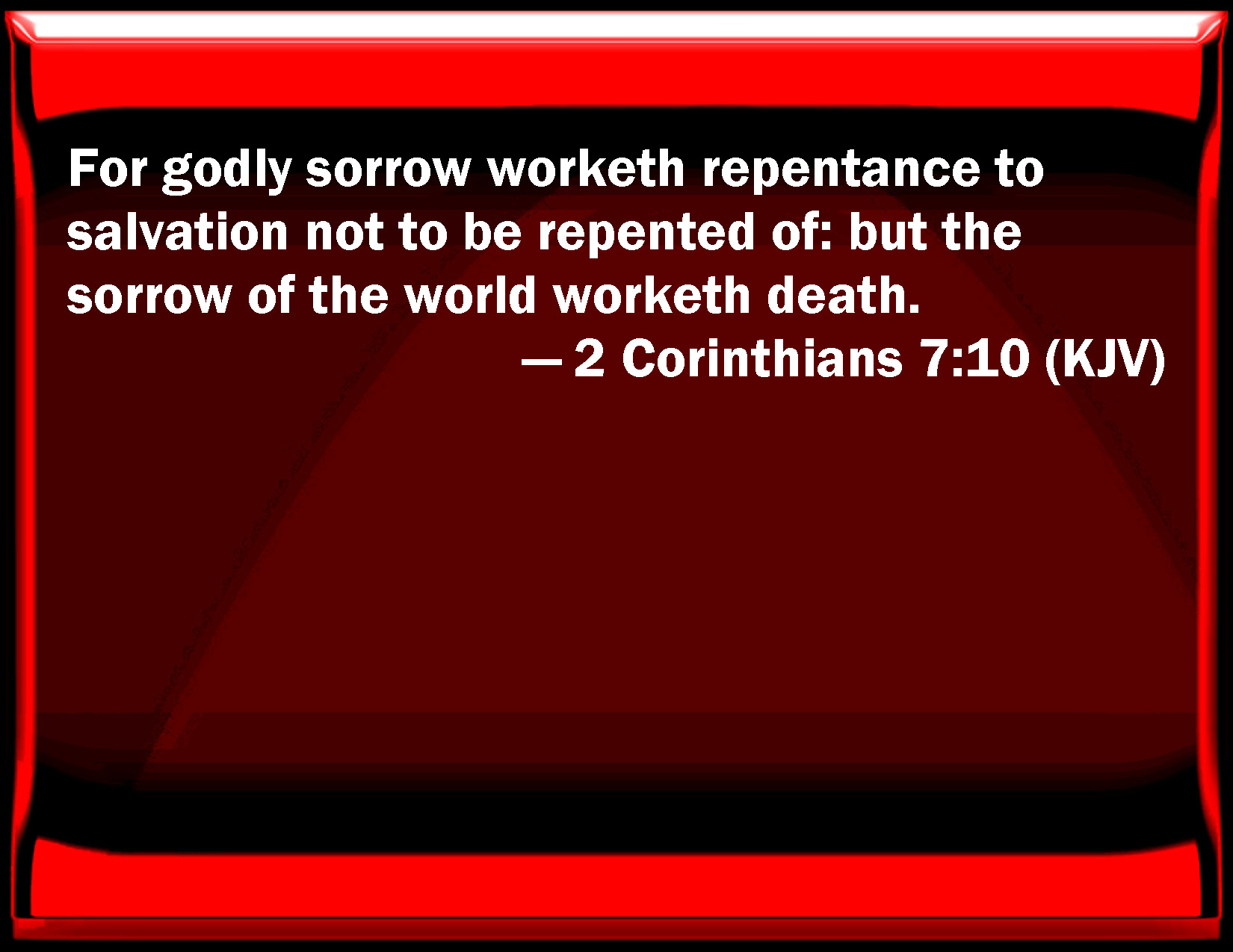 2 Corinthians 7:10 For godly sorrow works repentance to salvation not to be repented of: but the sorrow of the world works death.