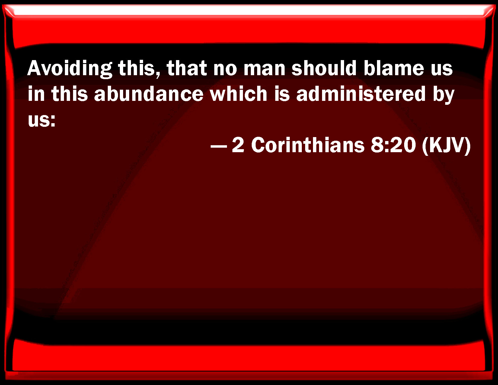 2 Corinthians 8:20 Avoiding this, that no man should blame us in this abundance which is administered by us: