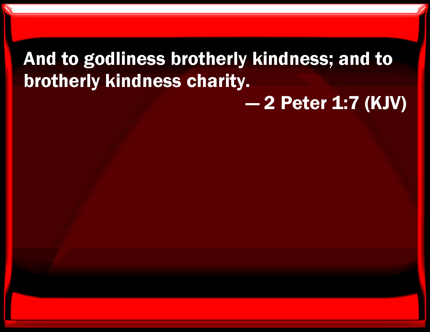And to godliness brotherly kindness; and to brotherly kindness charity.