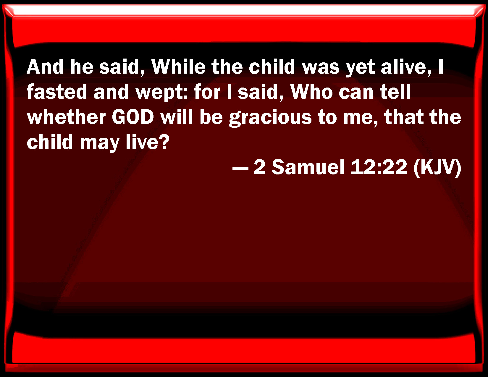 2 Samuel 12:22 And he said, While the child was yet alive, I fasted and wept: for I said, Who can tell whether GOD will be gracious to me, that the child may live?