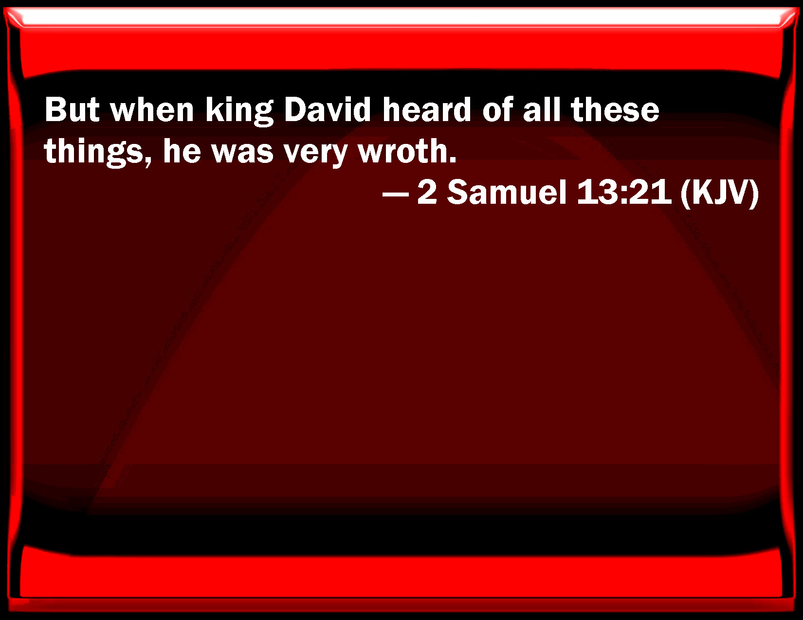 2 Samuel 13:21 But when king David heard of all these things, he was very wroth.