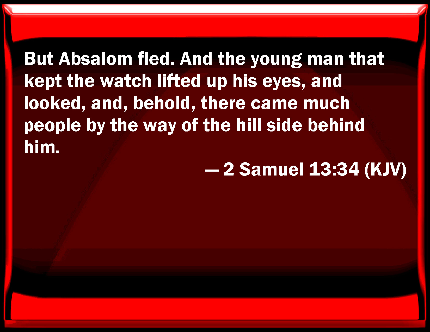 WBT:  But Absalom fled. And the young man that kept the watch lifted up his eyes, and looked, and behold, there came many people by the way of the hillside behind him.