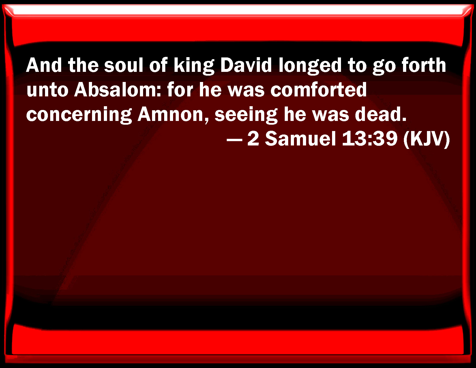 2 Samuel 13:39 And the soul of king David longed to go forth to Absalom: for he was comforted concerning Amnon, seeing he was dead.