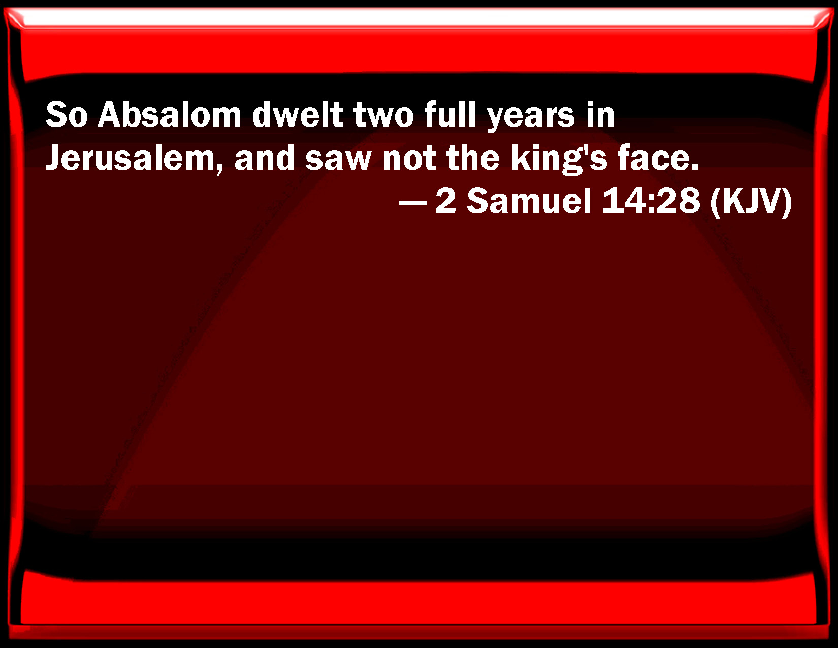 2 Samuel 14:28 So Absalom dwelled two full years in Jerusalem, and saw not the king's face.