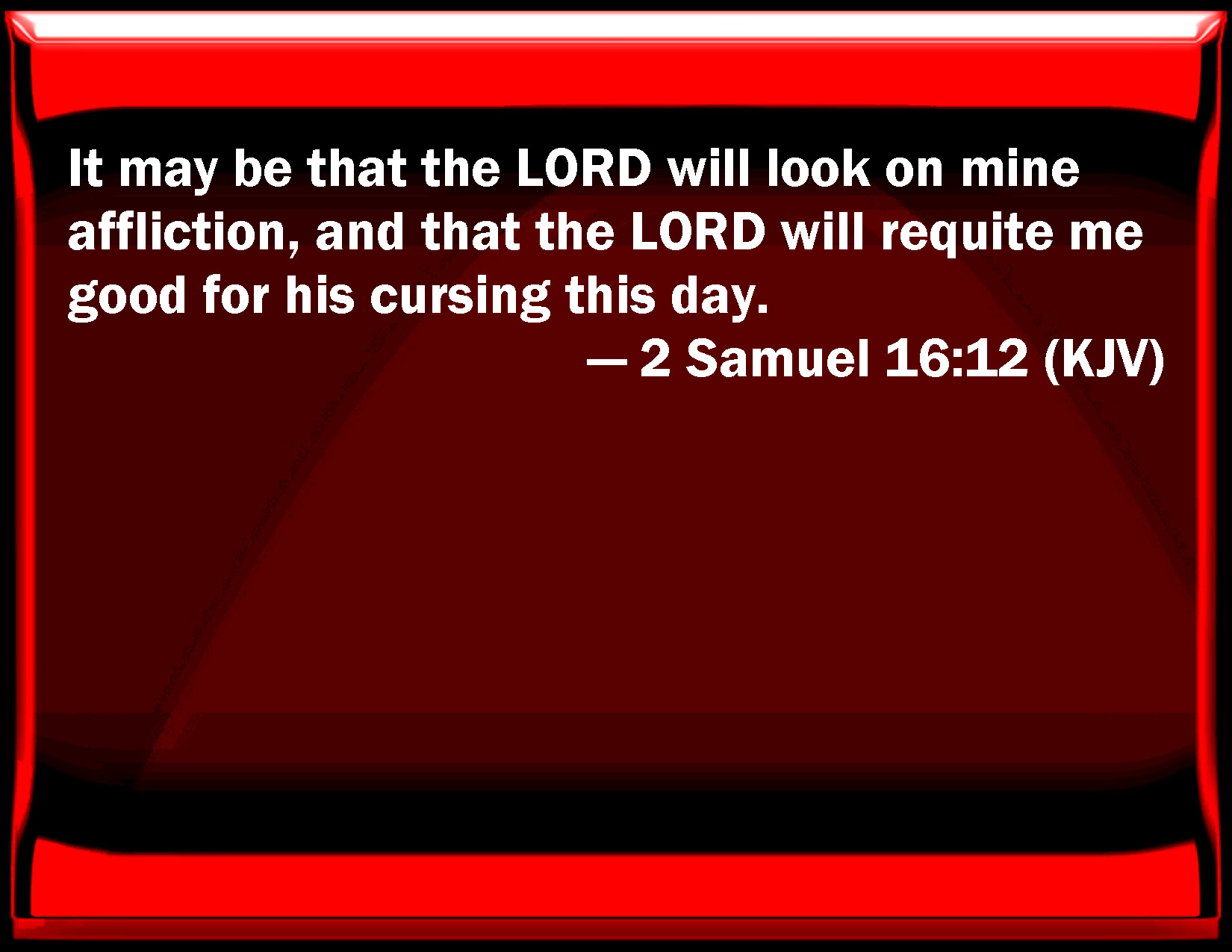 2 Samuel 16:12 It may be that the LORD will look on my affliction, and that the LORD will requite me good for his cursing this day.