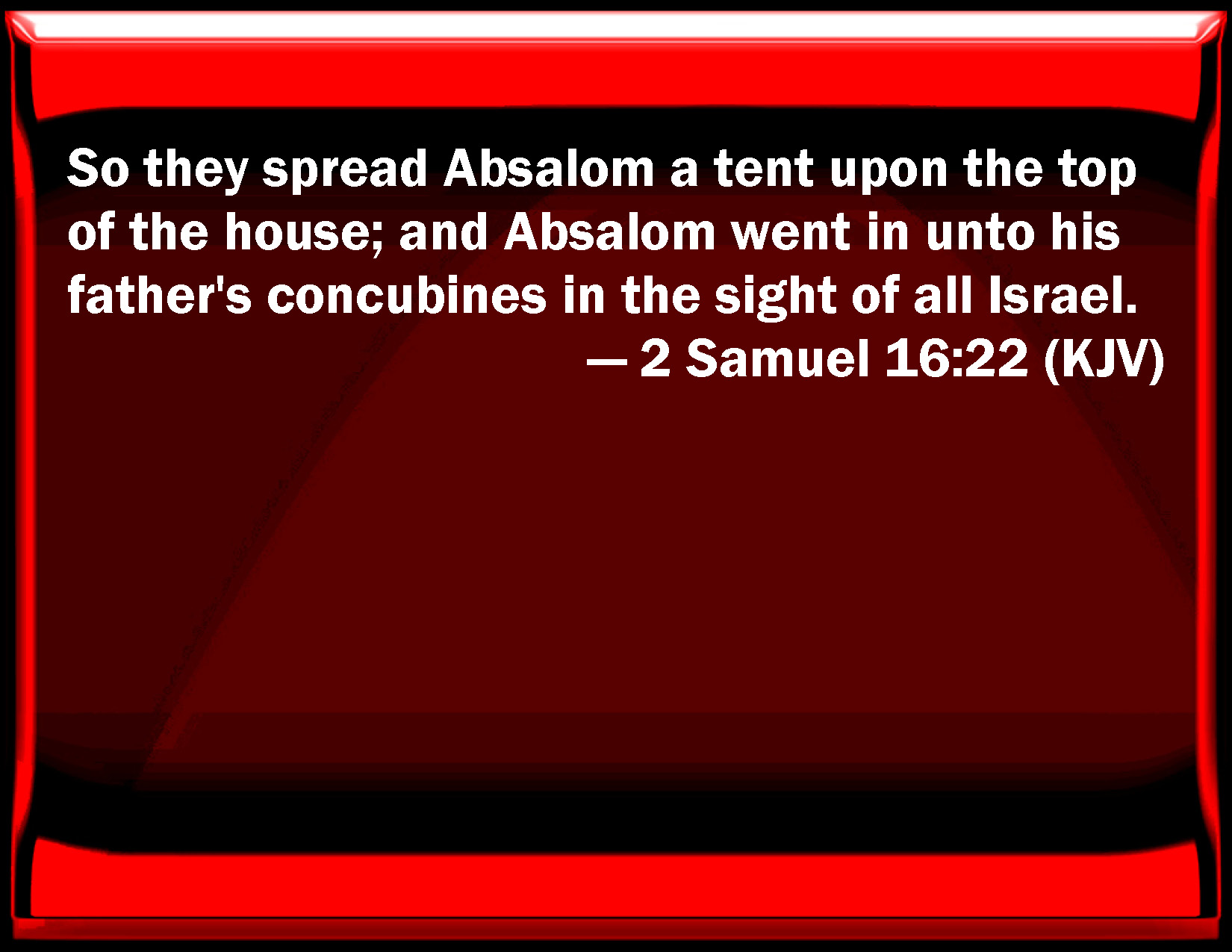 And they spread out for Absalom the tent on the roof, and Absalom goeth in unto the concubines of his father before the eyes of all Israel.