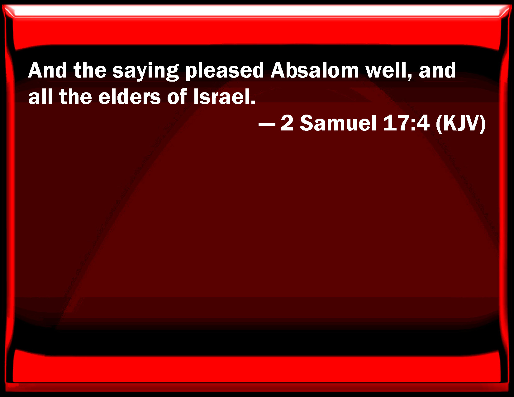 2 Samuel 17:4 And the saying pleased Absalom well, and all the elders of Israel.
