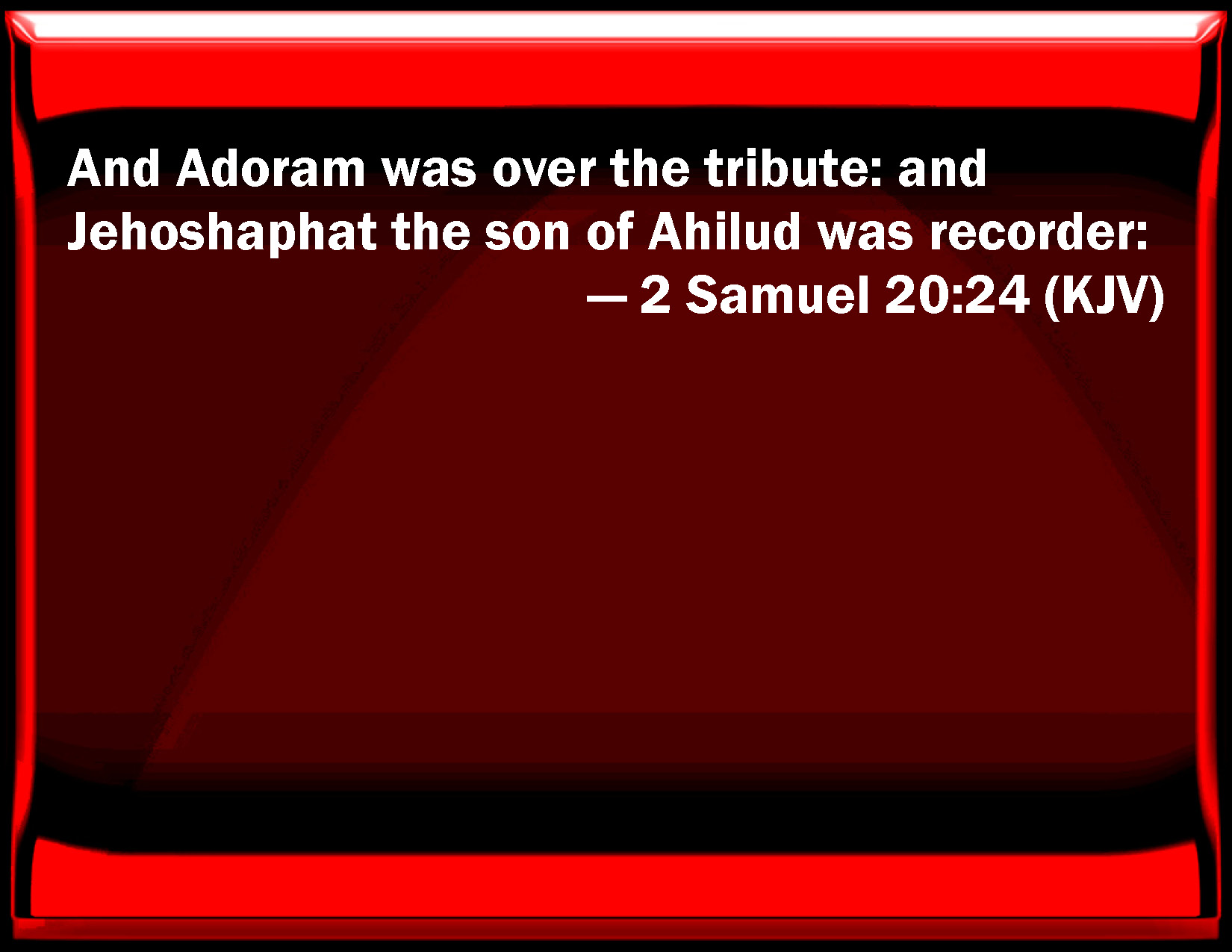 2 Samuel 20:24 And Adoram was over the tribute: and Jehoshaphat the son of Ahilud was recorder: