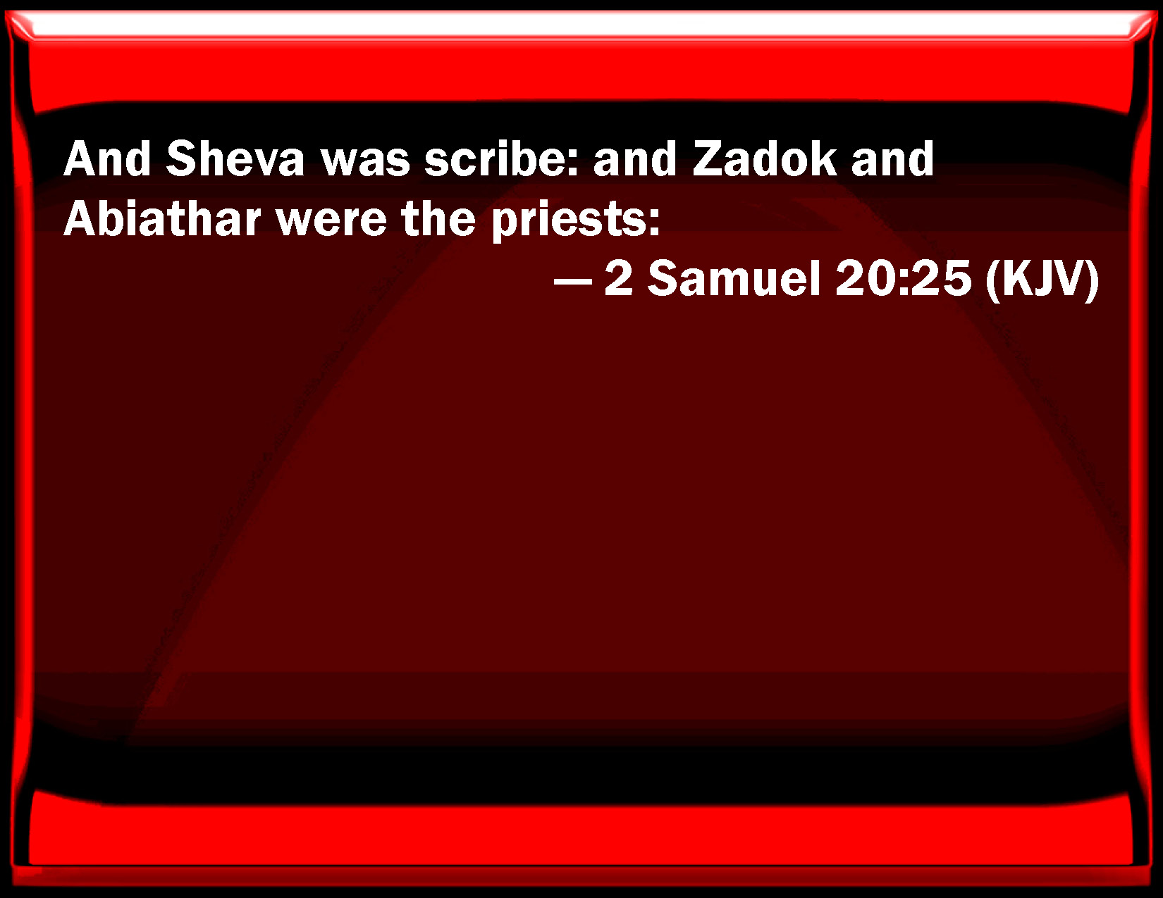 2 Samuel 20:25 And Sheva was scribe: and Zadok and Abiathar were the priests: