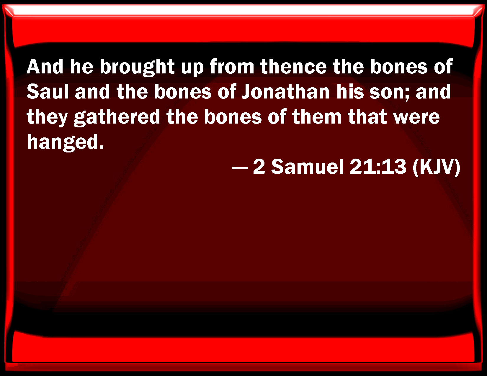 2 Samuel 21:13 And he brought up from there the bones of Saul and the bones of Jonathan his son; and they gathered the bones of them that were hanged.