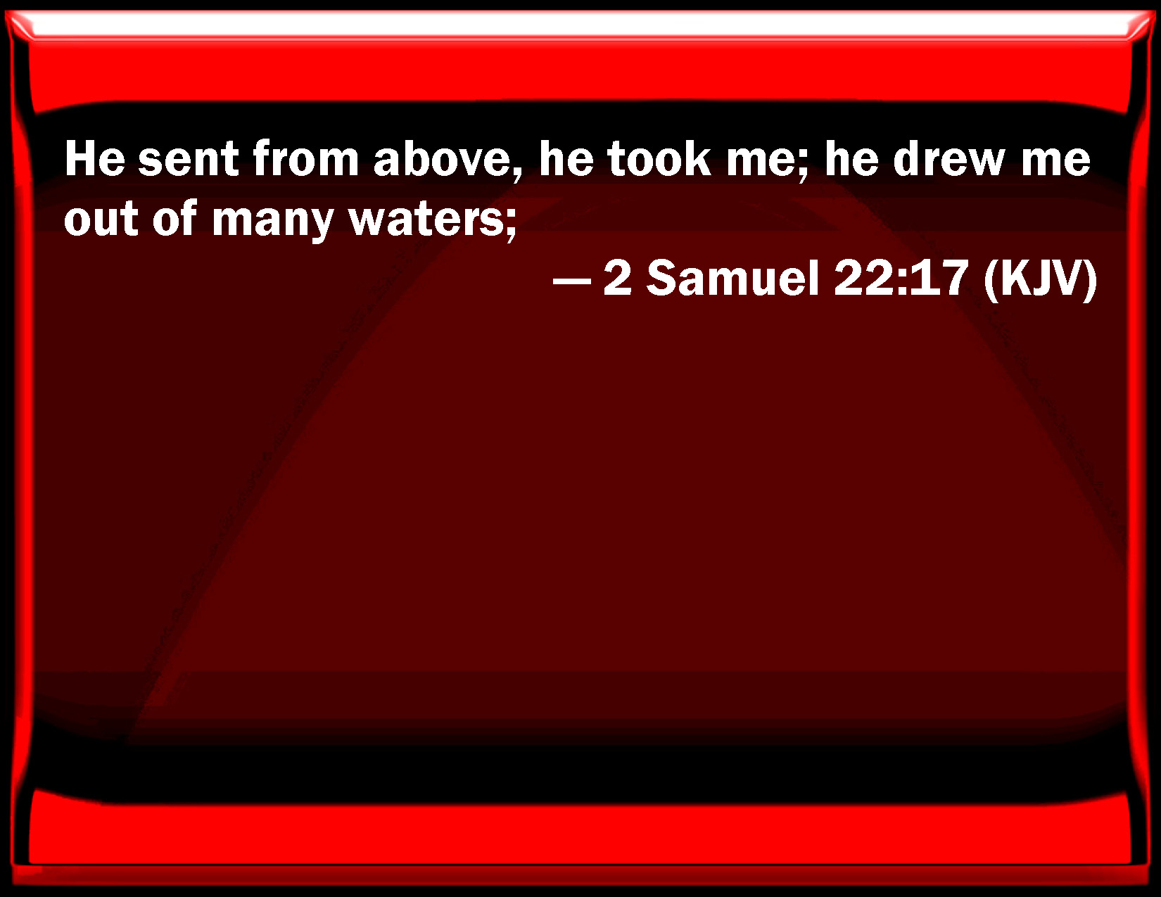 2 Samuel 22:17 He sent from above, he took me; he drew me out of many waters;
