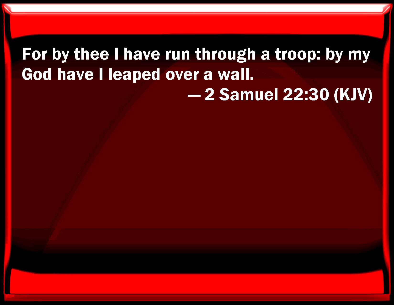 For by thee I have run through a troop; By my God have I leaped over a wall.