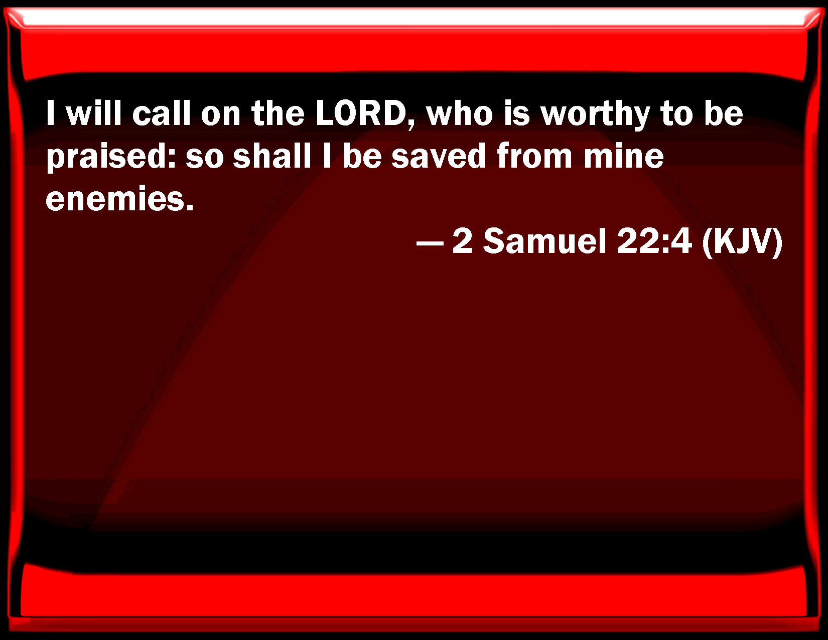 2 Samuel 22:4 I will call on the LORD, who is worthy to be praised: so shall I be saved from my enemies.