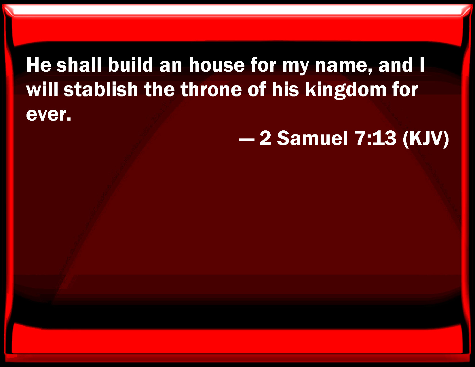 2 Samuel 7:13 He shall build an house for my name, and I will establish the throne of his kingdom for ever.