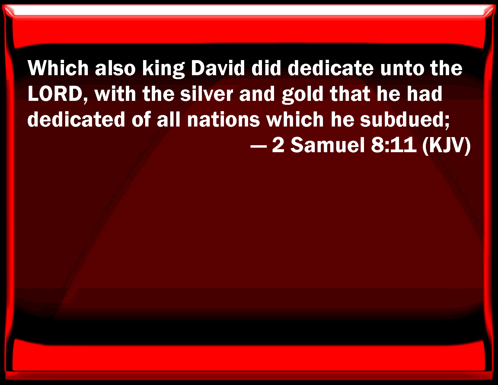 2 Samuel 8:11 Which also king David did dedicate to the LORD, with the silver and gold that he had dedicated of all nations which he subdued;