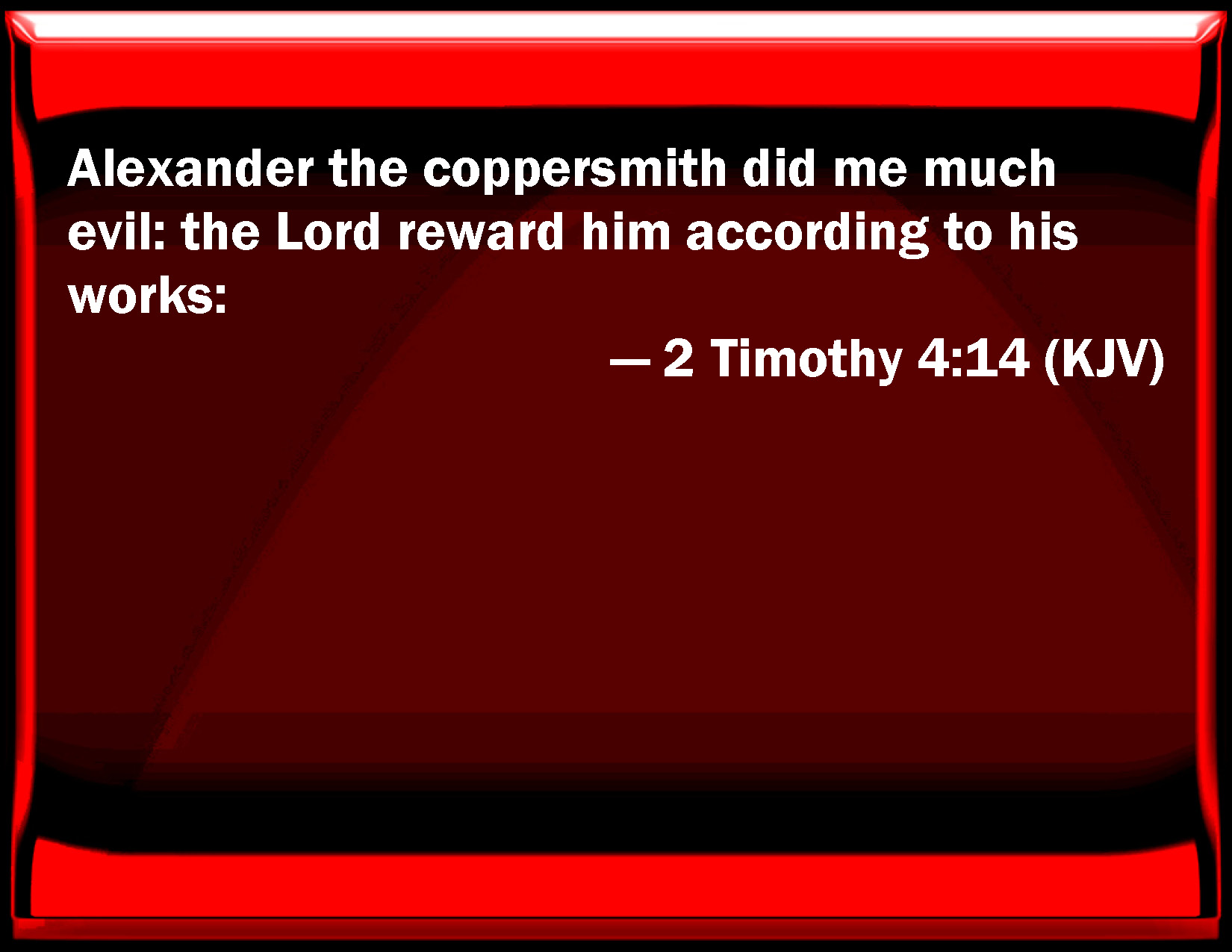2 Timothy 4:14 Alexander the coppersmith did me much evil: the Lord reward him according to his works: